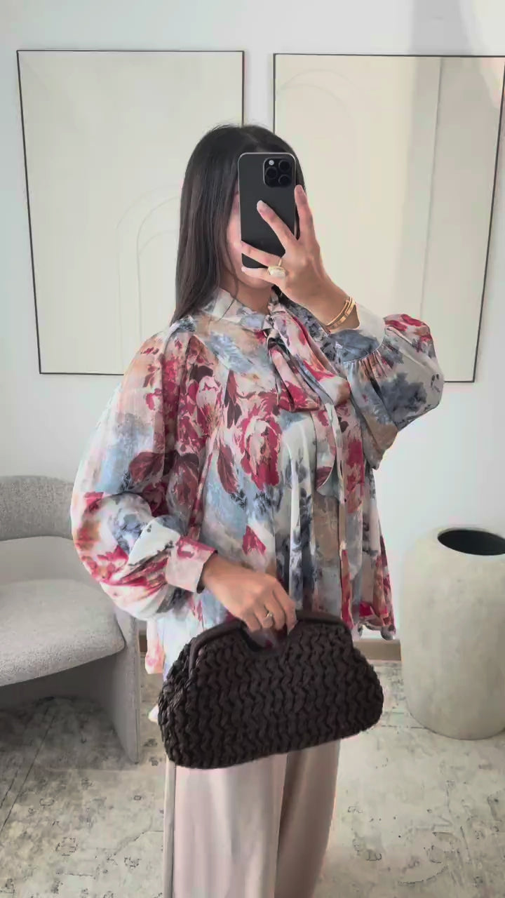 A soft, floaty blouse with a relaxed fit and subtle statement print. Effortlessly chic for everyday wear.
